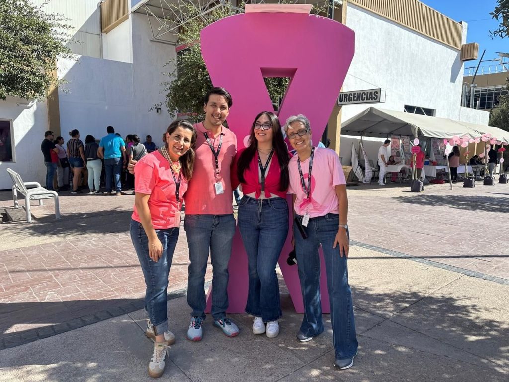En la formación de este moño simbólico participaron derechohabientes, enfermeras, químicos, médicos y personal administrativo vestidos con camisetas color rosa de las diversas áreas de la institución, quienes se congregaron en la Plaza de la Salud de PCE.