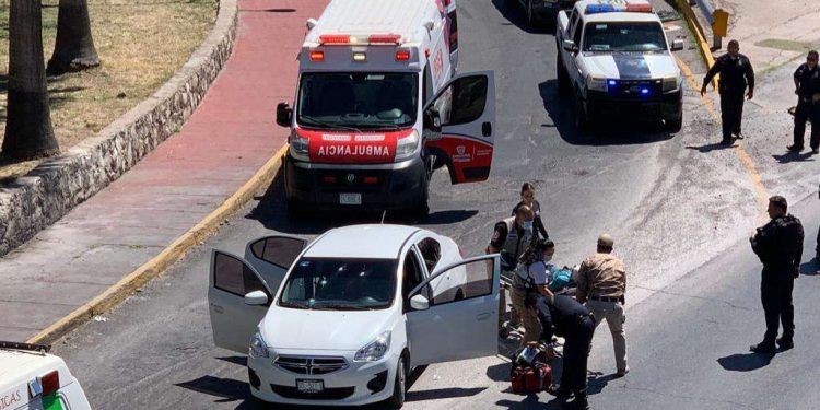 Sujetos armados dispararon en contra de unas personas que viajaban a bordo de un vehículo Dodge Attitude color blanco, al servicio de la plataforma Uber, cuando bajaban la rampa de salida desde la avenida Ocampo hacia la avenida Borunda.