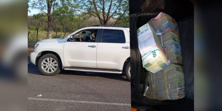Al interior, se localizó una mochila negra con diversos fajos de billetes de diversas denominaciones y varios cheques “sin los documentos que comprobaran su legal posesión y traslado”.
