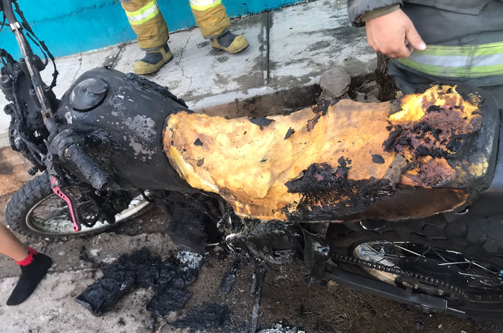 Al arribo de los traga humo, estos se percataron que la conflagración ya había sido extinguida por el propietario de la moto de nombre Alejandro L.L., quien señaló a los bomberos que al parecer, un sujeto desconocido roció con gasolina el biciclo y le prendió fuego.
