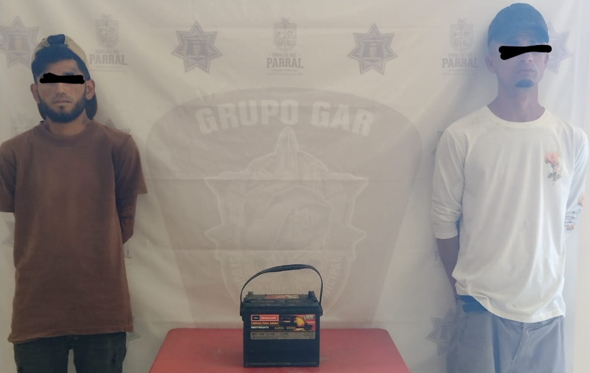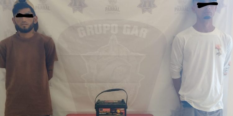 La Dirección de Seguridad Pública detuvo a dos hombres por extraer la batería de un vehículo marca Jetta, la tarde de este lunes.