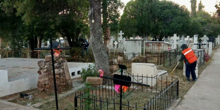 Con motivo de la próxima conmemoración del Día de Muertos, la Dirección de Servicios Públicos realiza un operativo especial de limpieza y acondicionamiento en los panteones municipales, con el objetivo de que los espacios estén listos para recibir a las familias que acuden a visitar a sus seres queridos.