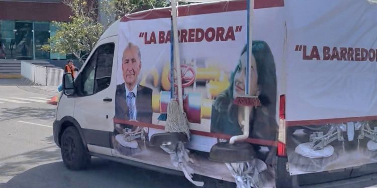 Una ambulancia que llevaba leyendas que señalaban presuntos vínculos de la senadora morenista Andrea Chávez Treviño y del senador Adán Augusto López Hernández con el grupo delictivo conocido como La Barredora, circuló y se detuvo brevemente este domingo en el Centro de Exposiciones y Convenciones de Chihuahua, donde la legisladora ofrecía su Primer Informe de Actividades Legislativas.