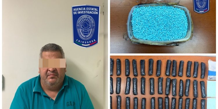 Elementos de la Agencia Estatal de Investigación (AEI) aseguraron en Ciudad Juárez 77 mil 960 pastillas de fentanilo, así como un kilo 150 gramos de heroína y se detuvo a una persona como presunto responsable de delitos contra la salud.
