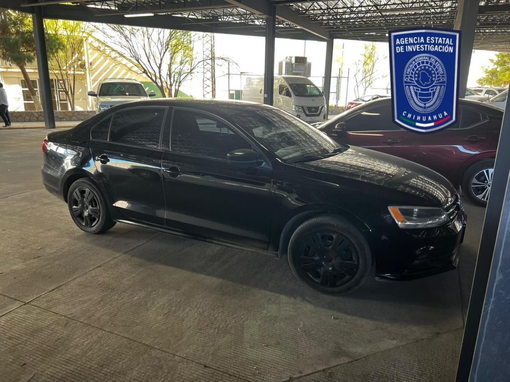 También fue asegurado un vehículo marca Volkswagen, línea Jetta, modelo 2016, color negro, con placas de circulación del estado de Chihuahua.