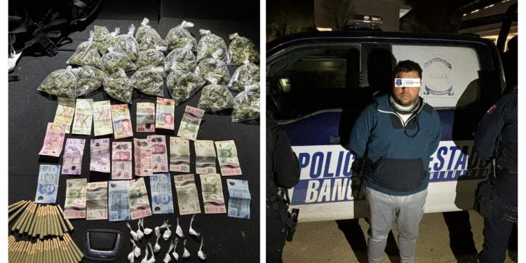 La acción policial derivó en el aseguramiento de 49 cigarrillos que en su interior contenían una hierba verde y olorosa con las características de la marihuana, además de 19 envoltorios transparentes que, en su interior, contenían el mismo enervante, y 16 envoltorios más cuyo contenido era un polvo blanco con las características de la cocaína.