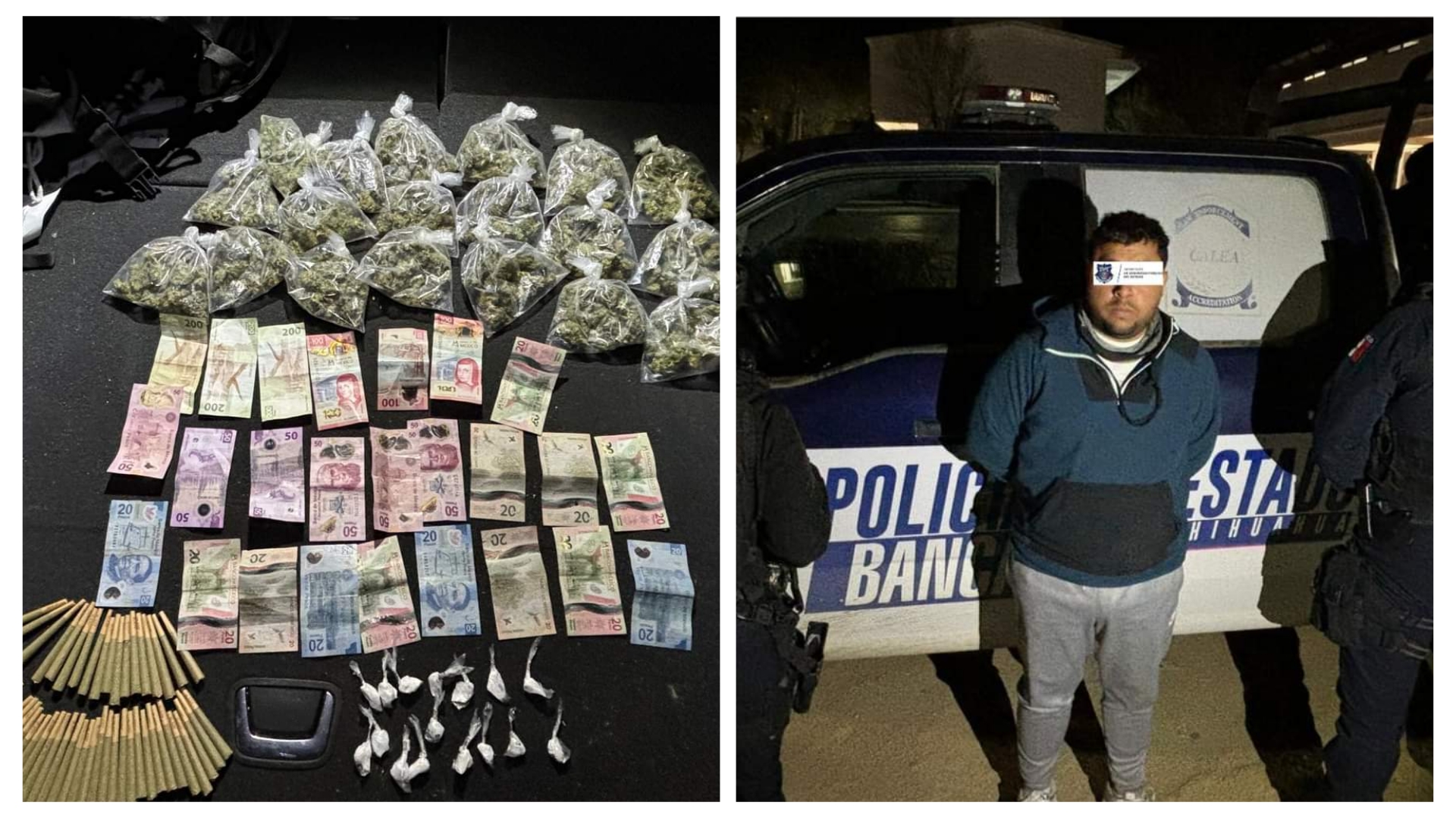 Elementos de la Secretaría de Seguridad Pública del Estado de Chihuahua (SSPE) detuvo a un hombre de 30 años de edad en el Barrio del Conejo por la supuesta comisión de delitos contra la salud
