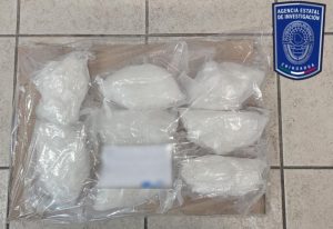 Durante la ejecución de una orden de cateo, elementos de la Agencia Estatal de Investigación en la Zona Centro, capturaron a un sujeto en posesión de más de 8 kilogramos de cristal y más de 10 de fentanilo, en un fraccionamiento de la capital del estado.