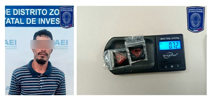 Elementos de la Agencia Estatal de Investigación (AEI) de la Fiscalía de Distrito Zona Sur, detuvieron en el término legal de la flagrancia a un masculino de nombre Luis Rey C. F., por su probable responsabilidad en el delito de posesión simple de narcóticos.