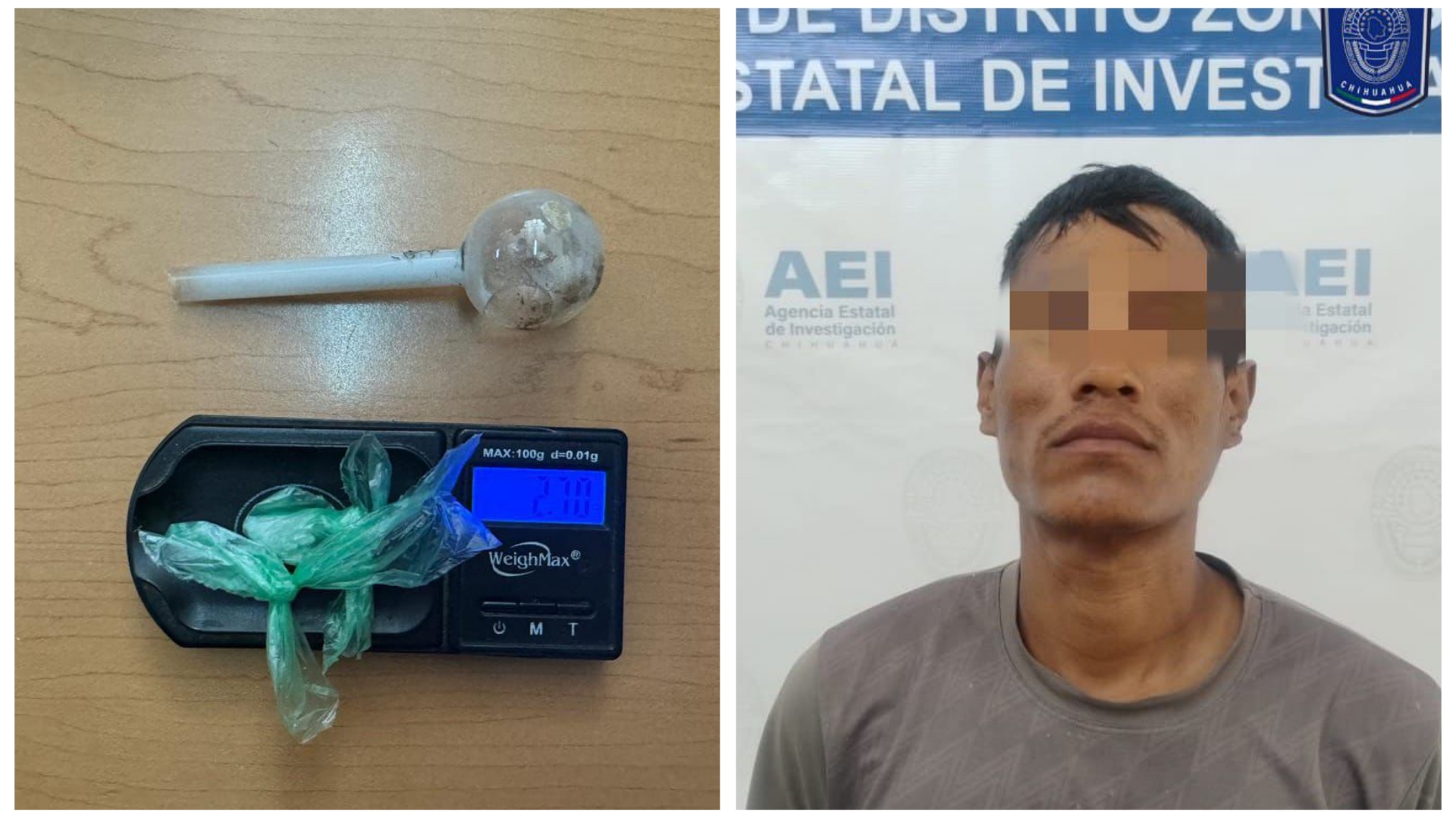 Elementos de la Agencia Estatal de Investigación (AEI) que participan en los operativos para la disuasión de los delitos en la ciudad de Parral, detuvieron a un masculino de 33 años de edad, por su probable responsabilidad en el delito de posesión simple de narcóticos.