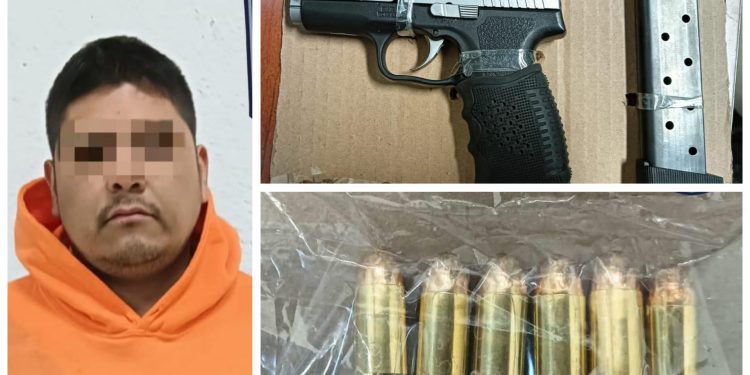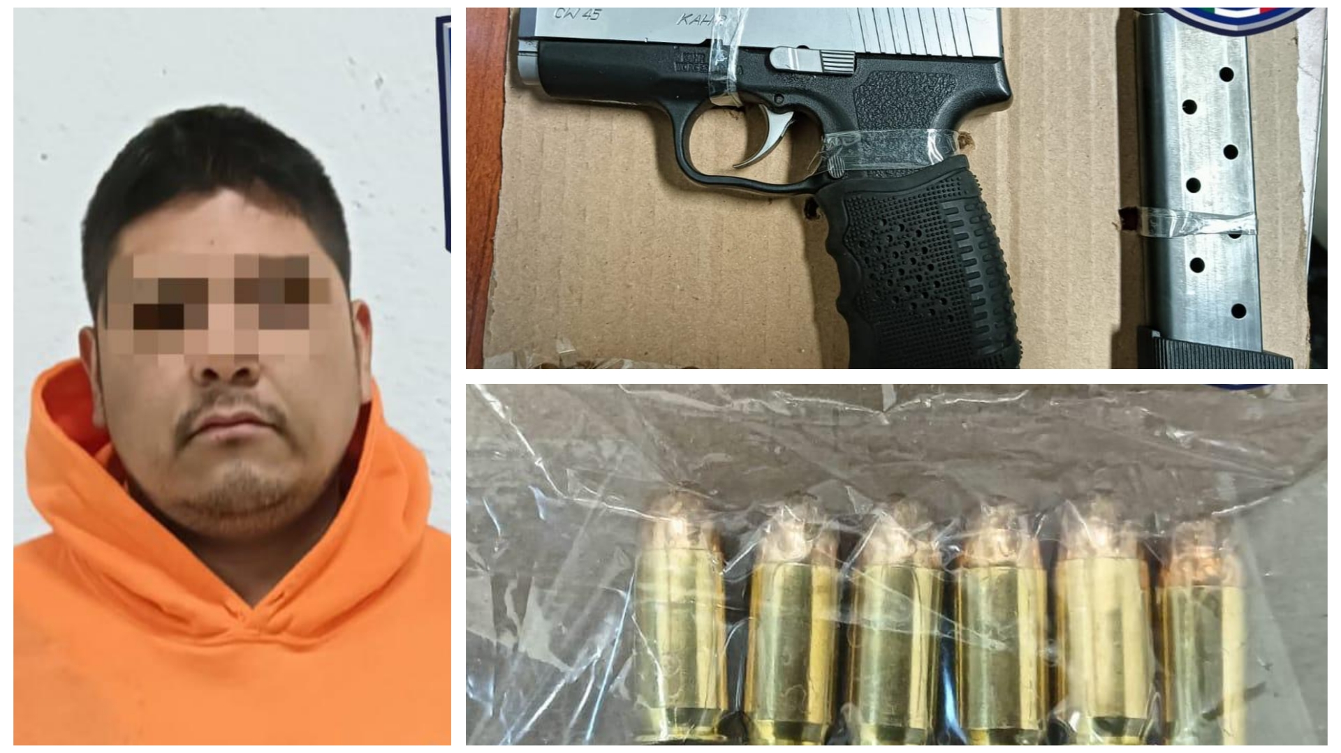 Por medio de comandos verbales, hicieron que el conductor identificado como Jesús Manuel A. F., descendiera del automotor y tras una revisión corporal, entre sus pertenencias se le encontraron dos envoltorios de plástico que contenían 0.80 gramos de cocaína y una pistola tipo escuadra marca KAHR, calibre .45, abastecida con 10 cartuchos.