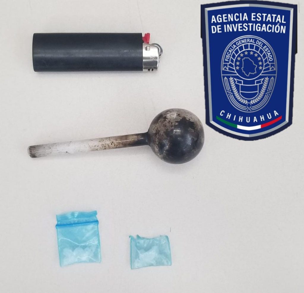 Durante la revisión, se le encontró entre sus pertenencias dos envoltorios plásticos con un 01 gramo de cristal, una pipa de vidrio y un encendedor.