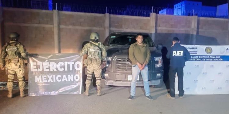 Como resultado de las acciones para inhibir la comisión de delitos, en un Operativo Conjunto desplegado en el municipio de Guadalupe y Calvo, se detuvo a un masculino de nombre Bryan Iraín M.M., de 23 años de edad, por los delitos de portación ilegal de armas y posesión de vehículo con reporte de robo.