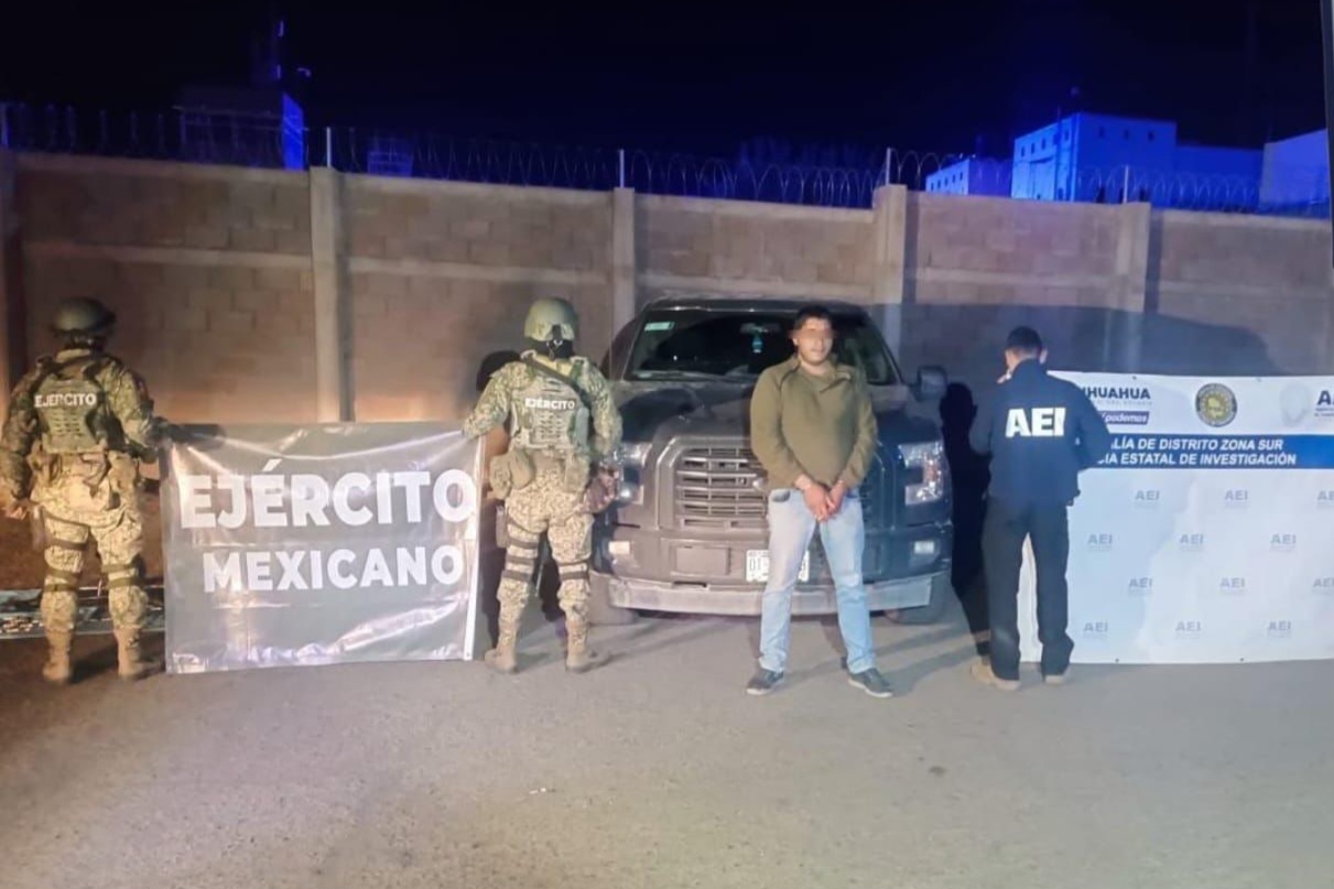 Fue detenido en flagrancia por elementos de la Agencia Estatal de Investigación y Personal del Ejercito Mexicano, cuando circulaba por una brecha del referido municipio, donde le revisaron una pick up de la marca Ford, línea Lobo, modelo 2017, la cual contaba con reporte de robo interpuesto el 18 de junio de 2024.