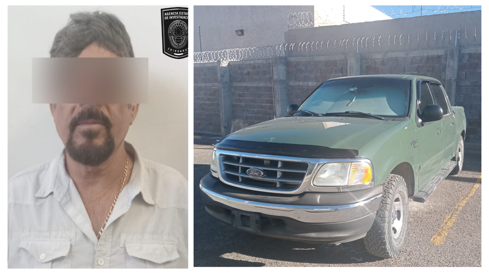 Elementos de la Agencia Estatal de Investigación (AEI), aseguraron en la ciudad de Parral, una pick up internada de manera ilegal al territorio nacional que portaba placas sobrepuestas, hechos por los que fue detenido su conductor de nombre Ángel F. C., de 62 años de edad.
