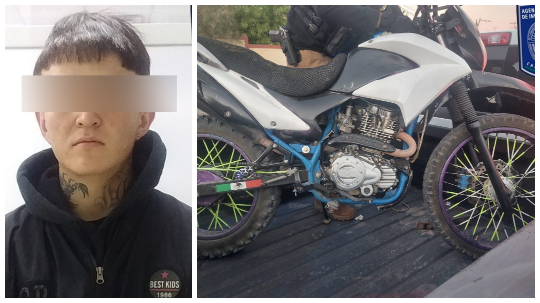 Elementos de la Agencia Estatal de Investigación (AEI) detuvieron en el término legal de la flagrancia a una persona de nombre Omar L. A., por el delito de posesión de vehículo con reporte de robo, ya que conducía una motocicleta robada en el municipio de Rosales.