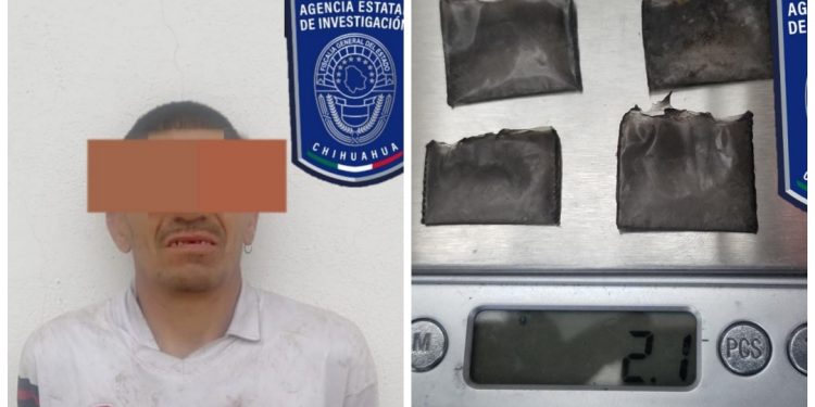Elementos de la Agencia Estatal de Investigación detuvieron en términos de la flagrancia a una persona de nombre Mario Alberto J. J., por el delito de posesión simple de droga.