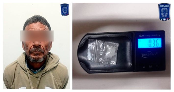 Elementos de la Agencia Estatal de Investigación (AEI) que participan en los operativos para la disuasión de los delitos en la ciudad de Parral, detuvieron en los términos de la flagrancia a un masculino de nombre Javier R. Q., de 52 años de edad, por el probable delito de posesión simple de narcóticos.
