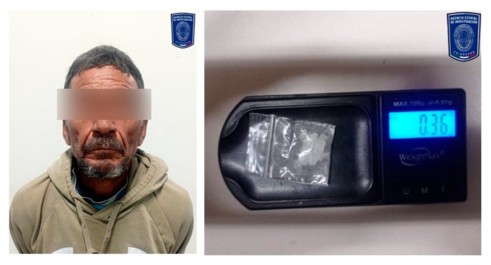 En dicho lugar tuvieron a la vista al presunto quien, al percatarse de la presencia policial intentó huir rápidamente, pero los Policías Investigadores le dieron alcance y le realizaron una revisión corporal, encontrándole entre sus pertenencias un envoltorio de plástico con 0.38 gramos de metanfetamina, también conocida como cristal.