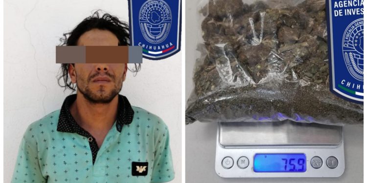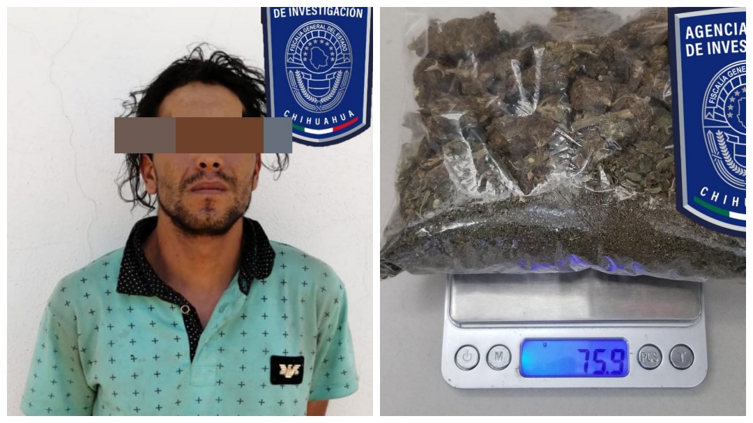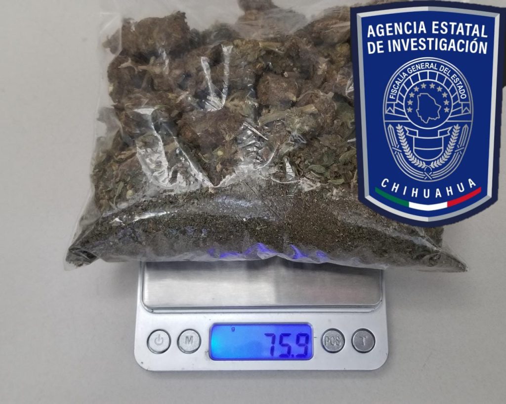 Elementos de la Agencia Estatal de Investigación (AEI) destacamentados en la ciudad de Parral, detuvieron en el término legal de la flagrancia a José Guadalupe C. C., por su probable responsabilidad en delitos contra la salud en la modalidad de posesión simple de droga.