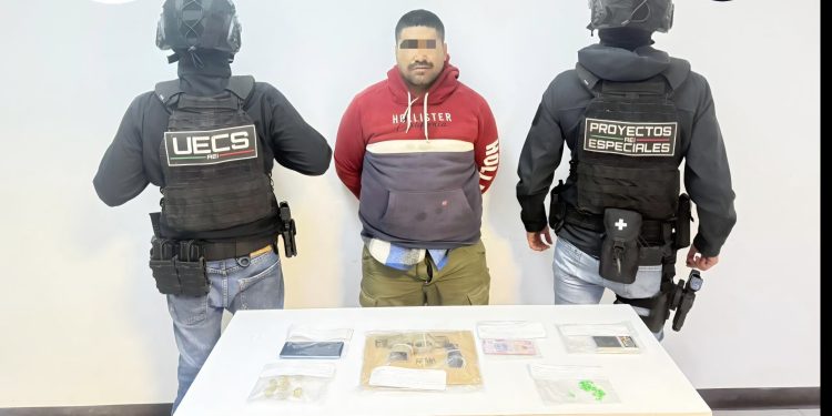 Elementos de la Fiscalía Especializada en Operaciones Estratégicas (FEOE) de la Fiscalía General del Estado, detuvieron a Óscar Manuel R. D., por violación a la Ley Federal de Armas de Fuego y Explosivos y delitos contra la salud.