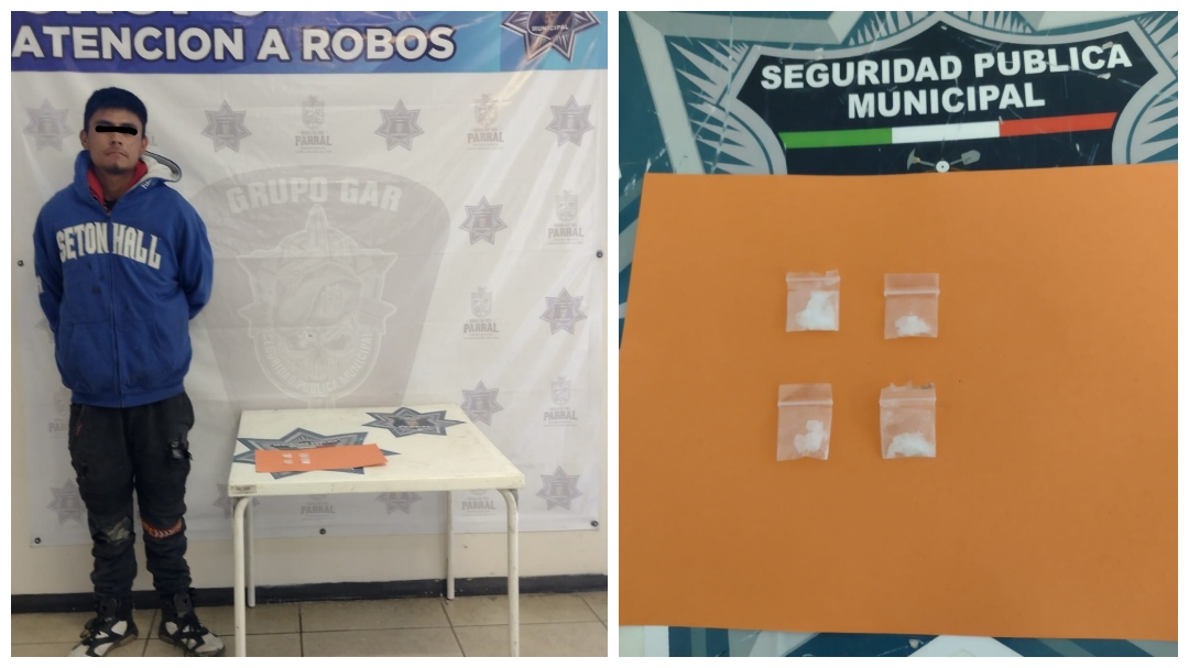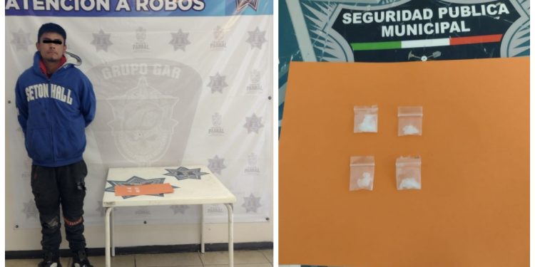 Agentes del Grupo Especial de Atención a Robos de la Dirección General de Seguridad Pública Municipal arrestaron a un individuo de 19 años en posesión de supuesta droga conocida como cristal, luego de ser sorprendido orinando sobre la vía pública en el sector del Presón.