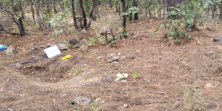Las acciones se llevaron a cabo en un predio en donde se detectó inicialmente tierra removida, así como una fosa, en donde se localizaron los restos que al parecer corresponden a un ser humano.