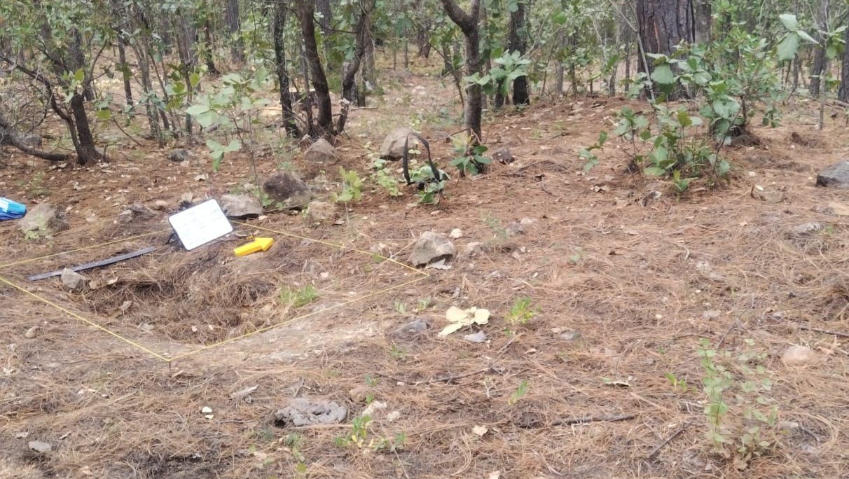 Las acciones se llevaron a cabo en un predio en donde se detectó inicialmente tierra removida, así como una fosa, en donde se localizaron los restos que al parecer corresponden a un ser humano.