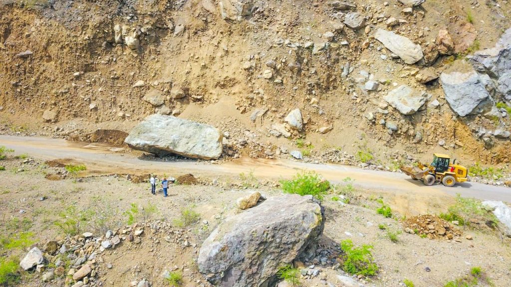 A través de tres equipos con maquinaria pesada, se logró el retiro de una gran cantidad de rocas y tierra que impedían el paso de los vehículos. El tránsito ya está permitido, pero se hace un llamado a tener precaución.