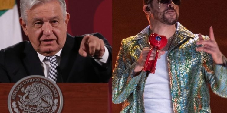 “Le pido a Bad Bunny, sé que está saturado y cansado porque trabaja mucho, pero le pido que considere la posibilidad de que venga a México, al Zócalo, ojalá y venga. No le podemos pagar, tendría que ser una colaboración de él, nosotros nos encargamos del escenario y de las luces, claro, no tan espectaculares, porque estoy viendo cómo salió en el Azteca volando en una palmera, eso sino se puede acá”, planteó el presidente.