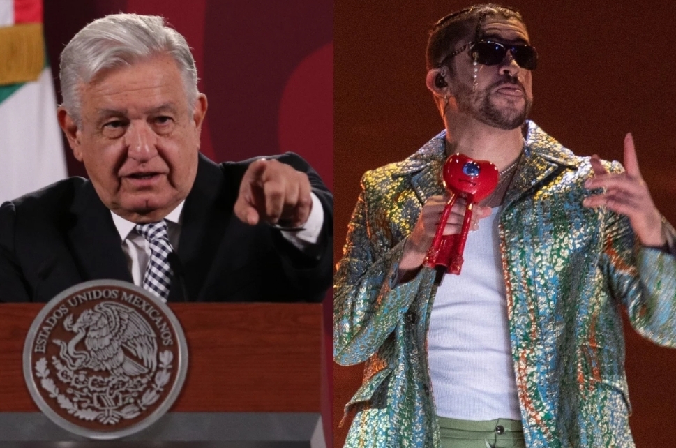 “Le pido a Bad Bunny, sé que está saturado y cansado porque trabaja mucho, pero le pido que considere la posibilidad de que venga a México, al Zócalo, ojalá y venga. No le podemos pagar, tendría que ser una colaboración de él, nosotros nos encargamos del escenario y de las luces, claro, no tan espectaculares, porque estoy viendo cómo salió en el Azteca volando en una palmera, eso sino se puede acá”, planteó el presidente.