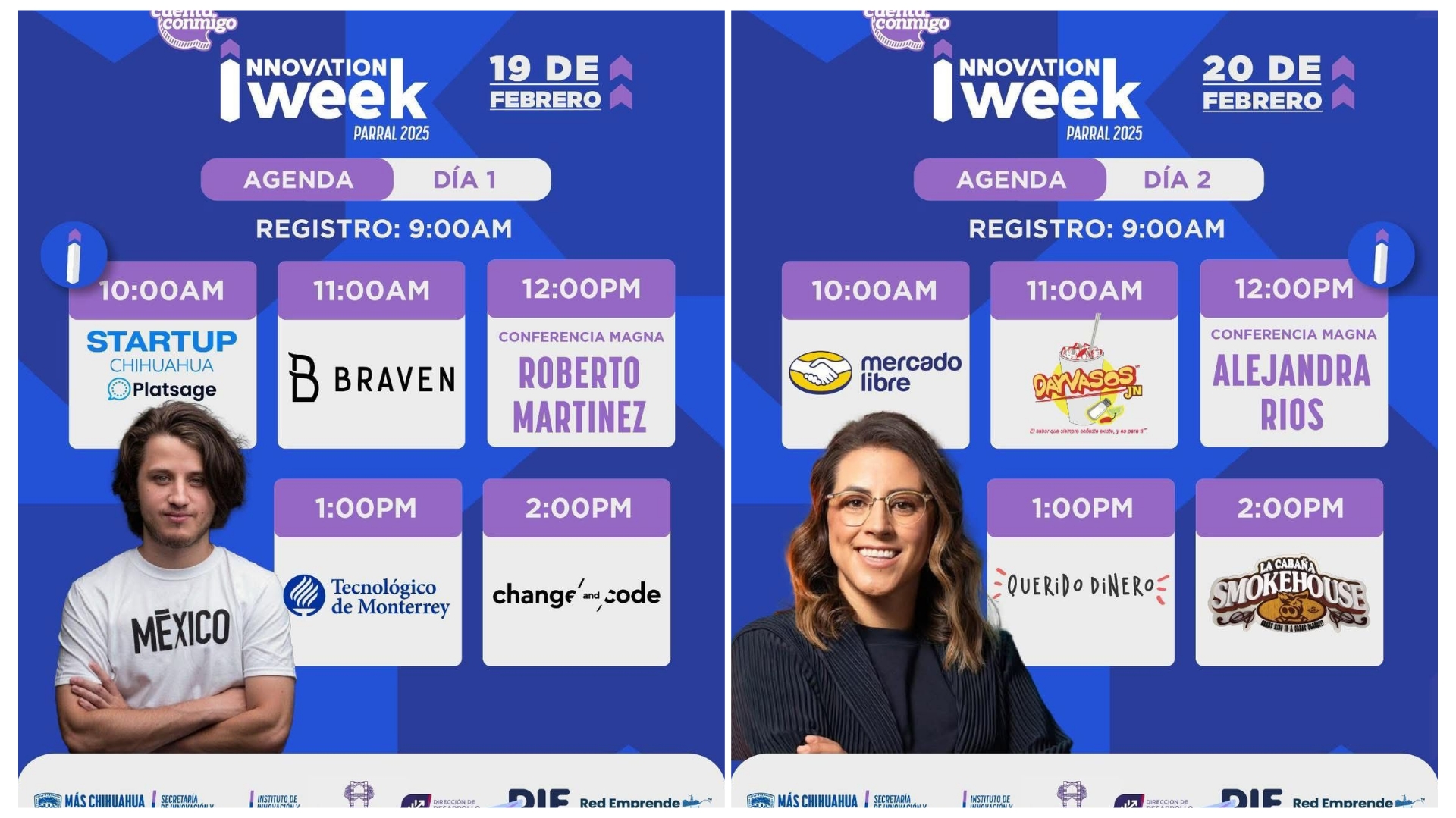 El Gobierno de Parral, en coordinación con Gobierno del Estado, invita a la ciudadanía a la cuarta edición del Innovation Week este 19 y 20 de febrero, a partir de las 10:00 de la mañana y hasta las 14:00 horas.
