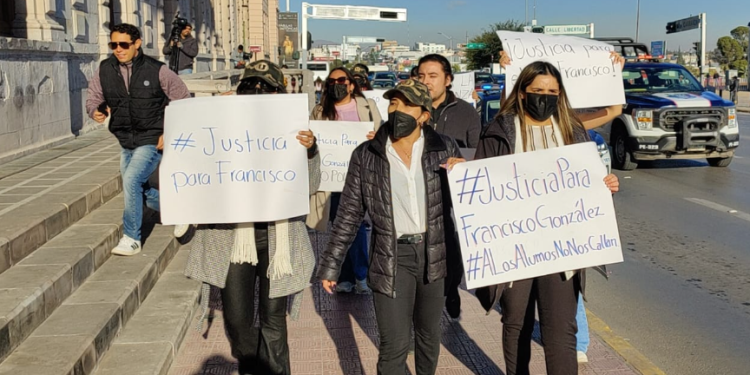 Los jóvenes partieron del campus uno de la Universidad Autónoma de Chihuahua (UACH) con rumbo a la Ciudad Judicial y durante el trayecto, pronunciaban consignas como: “Francisco González es un preso político. No a la venganza política, Justicia para el lic. Francisco”, y: “Por evidenciar la corrupción fue detenido sin justificación”, entre otras.