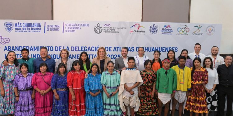 La gobernadora Maru Campos abanderó a la delegación de 18 atletas rarámuri, que participará en la cuarta edición de los Juegos Maestros Indígenas 2025 (ISWO, por sus siglas en inglés), que se llevará a cabo en la ciudad de Ottawa, Canadá