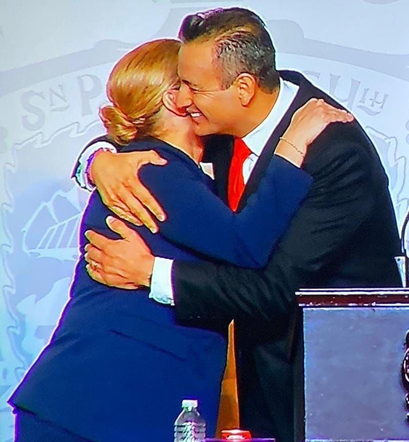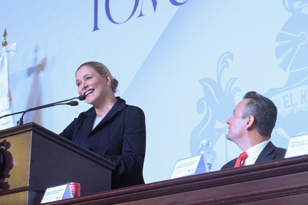 Al emitir su mensaje en la ceremonia de toma protesta del alcalde Marco Bonilla, le extendió una felicitación por el nuevo capítulo que hoy emprende por la ciudad, de la mano de un equipo comprometido que dará continuidad a las labores humanistas que ella empezó hace 8 años.