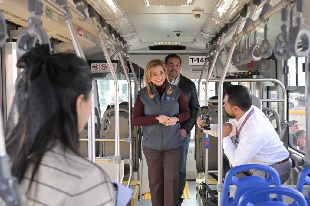 Luego de conocer los pormenores sobre la operación de las nuevas instalaciones, la Gobernadora abordó una de las nuevas unidades para dar un recorrido por la ruta. Descendió en la estación Tecnológico, donde interactuó con algunos de los usuarios.