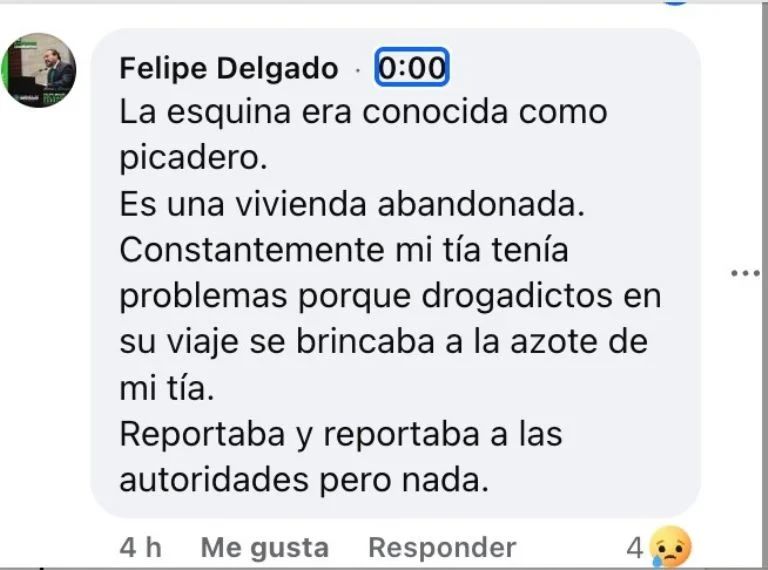 En otro comentario del diputado escribió: «La esquina era conocida como picadero, es una vivienda abandonada. Constantemente mi tía tenía problemas porque drogadictos en su viaje se brincaba a la azotea de mi tía. Reportaba y reportaba a las autoridades pero nada».