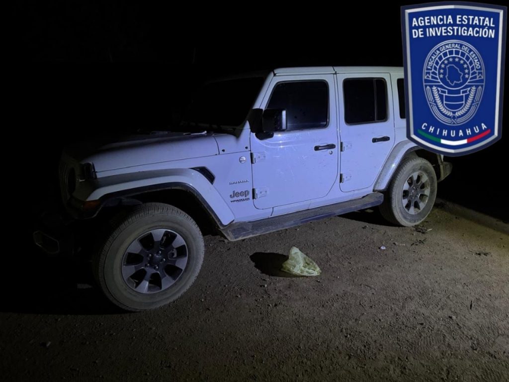 • Vehículo marca Jeep, línea Sahara, de color blanco, con matrículas del estado de Sinaloa.