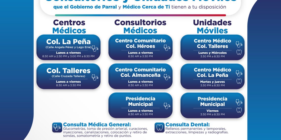 “Médico Cerca de Ti” anuncia horarios y centros de atención en Parral - El Papelerito