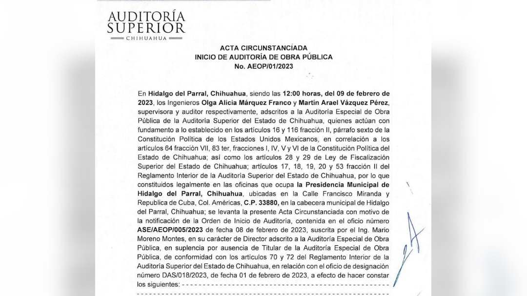 • Una vez que concluya la revisión, la ASE estará en condiciones de rendir un informe de hallazgos al Gobierno de Parral (ente observado) y fijará un periodo para atender y actuar en consecuencia.