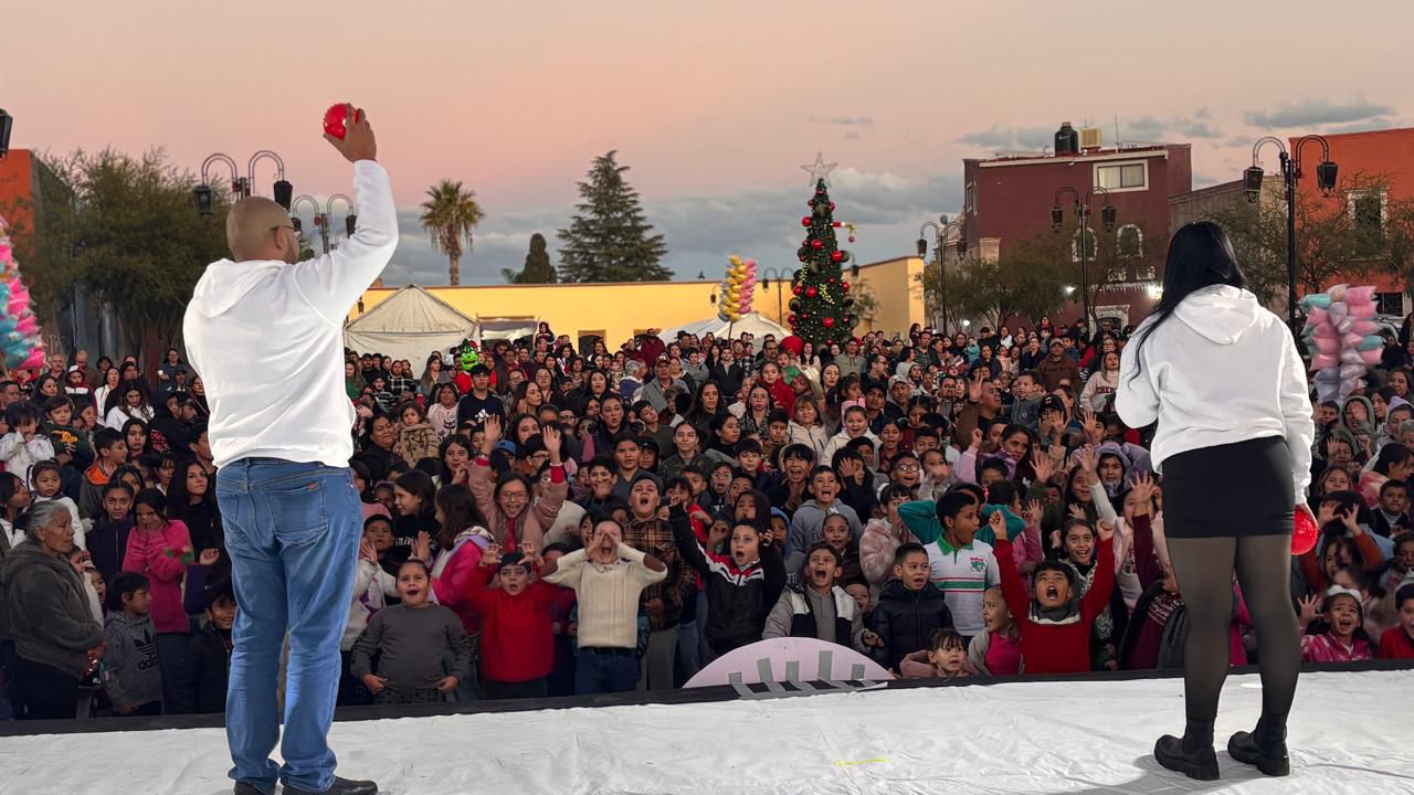 Los personajes de El espíritu de la Navidad, los hermanos y el Rey de los dulces, demostraron durante el acto su gran talento, otorgando a las familias parralenses que llegaron de toda la ciudad gratos momento en los que el asombro no faltó y pudieron compartir juntas.