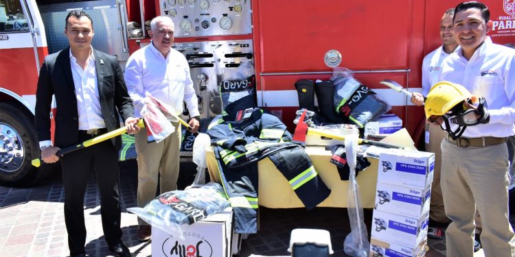 Esta mañana el H. Cuerpo de Bomberos de Parral recibió cinco equipos de seguridad y herramientas nuevas por más de 200 mil pesos, producto de la gestión del Municipio ante la Minera San Julián del Grupo Fresnillo, lo cual viene a reforzar la seguridad de cada elemento al realizar su comprometida y valiente labor.
