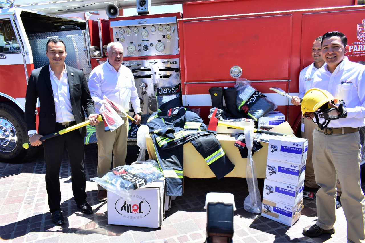 Esta mañana el H. Cuerpo de Bomberos de Parral recibió cinco equipos de seguridad y herramientas nuevas por más de 200 mil pesos, producto de la gestión del Municipio ante la Minera San Julián del Grupo Fresnillo, lo cual viene a reforzar la seguridad de cada elemento al realizar su comprometida y valiente labor.
