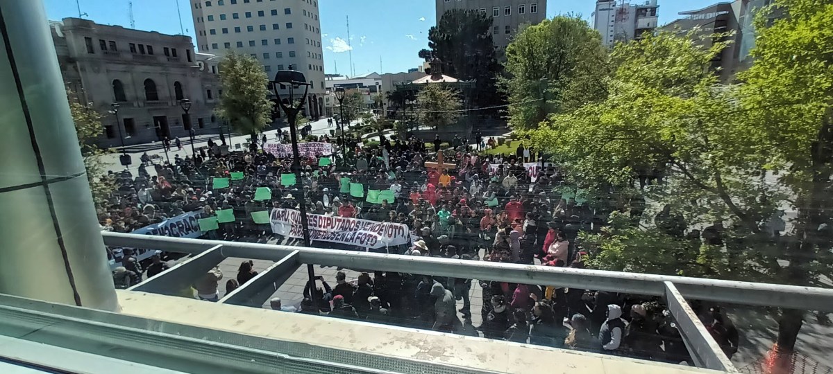A las afueras del Congreso del Estado de Chihuahua, decenas de morenistas se congregaron para realizar una manifestación «a favor de la democracia».