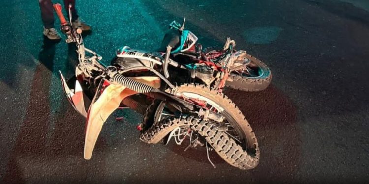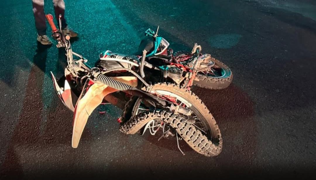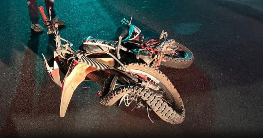 El percance se registró a la altura del cruce con la calle Juan Rangel, donde una motocicleta tipo cross, en colores blanco y rojo, terminó impactando contra un automóvil Chevrolet Aveo, modelo aproximado 2012.