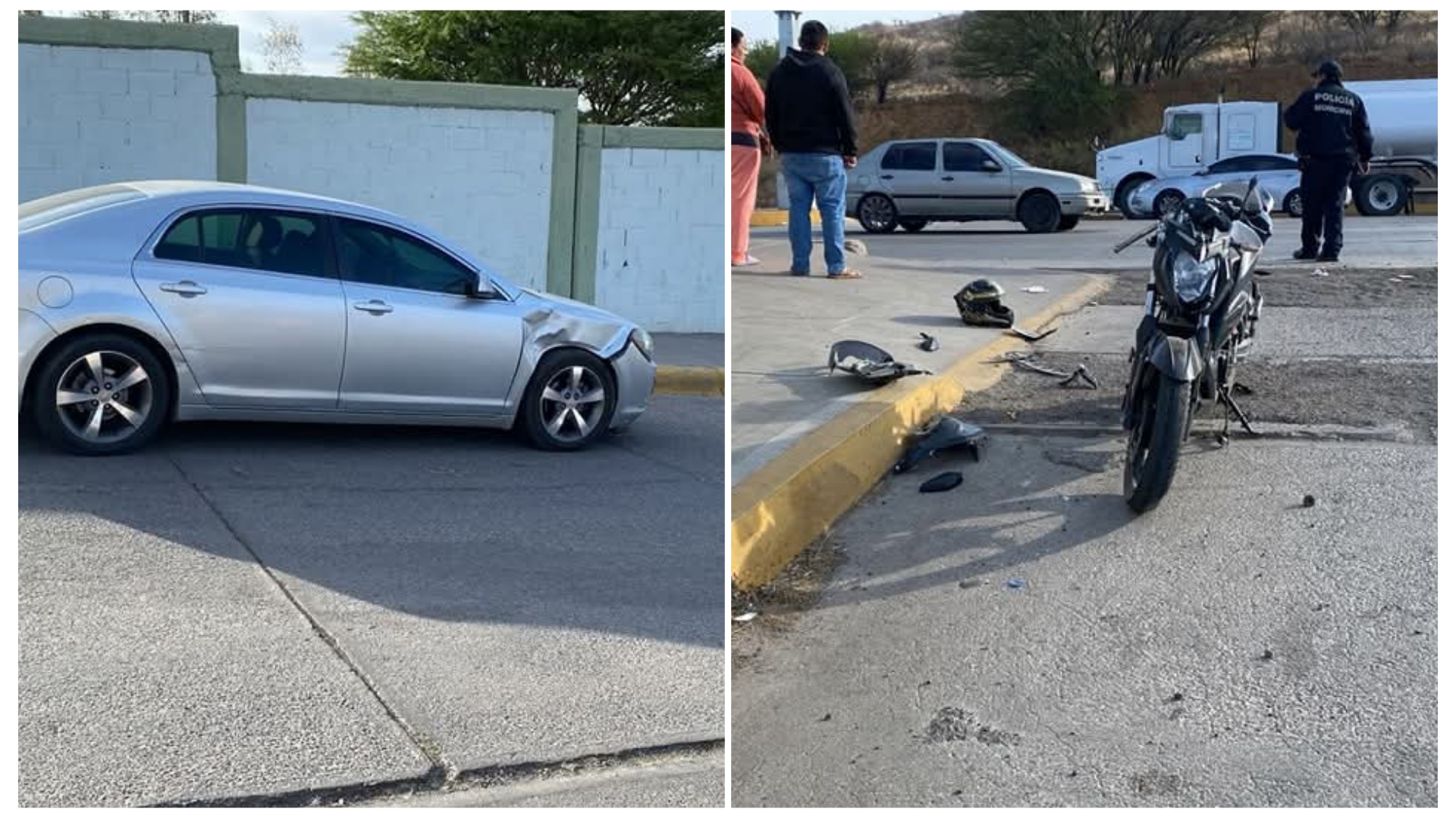 Fue en el acceso al CBTis 228 donde un carro se detuvo para ceder el paso a otro que ingresaría a la institución educativa a través de la calle Solidaridad, cuando una motocicleta Italika negra modelo 2024 sin placas, continuó avanzando por la derecha y brincó el bordo a exceso de velocidad y no alcanzó a frenar al ver que un Chevrolet Malibu 2011 color gris se había detenido, mismo que era guiado por Uriel Ignacio M. P.