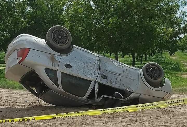 Casi a las 5 de la tarde del jueves 10 de julio, sobre la carretera Jiménez-Camargo, volcó un Chevrolet Corsa blanco en el que viajaban dos hombres.