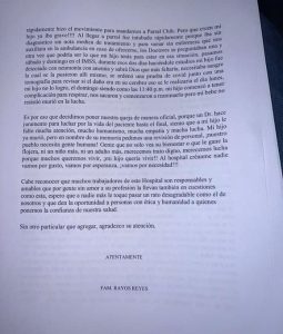 «Mi hijo ya murió, pero en nombre de su memoria pedimos una revisión de personal, ¡nuestro pueblo necesita gente humana Gente que no solo vea su bienestar o que le gane la flojera. ¡Ni un niño más, ni un adulto más! Merecemos trato digno, merecemos luchar porque muchos queremos vivir, ¡mi hijo queria vivir! Al hospital, créanme, nadie vamos por gusto, vamos por esperanza, ¡vamos por necesidad!», se puede leer en el documento que hizo público después de la tragedia.