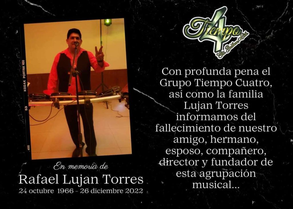 “Con profunda pena el Grupo Tiempo Cuatro, así como la Familia Luján Torres, informamos el fallecimiento de nuestro amigo, hermano, esposo, compañero y fundador de esta agrupación musical (sic)», se puede leer en el post.