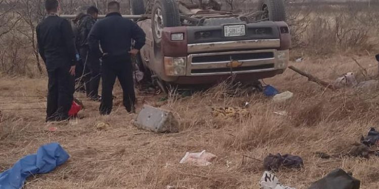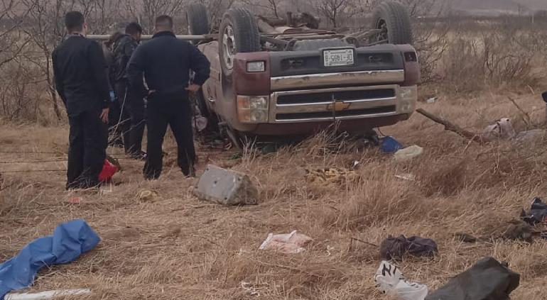 Una pick up Chevrolet, Silverado, con placas DF-1485-B, volcó en el kilómetro 95 rumbo a Ciudad Juárez. Tres niños perdieron la vida y cinco personas más resultaron heridas.